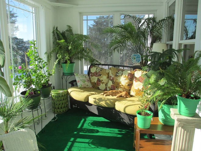 Hobby: Winter gardeningLast summer Beth Cody had her front porch enclosed, turning it into a sunroom. This winter she’s using the space for her hobby of winter gardening; she trims back and tidies her plants here. Not every aspect of winter gardening happens in the sunroom — Cody fills her watering can and washes plants in the bathtub, and she pots her plants on a workbench in the basement. “But neither of these is nearly as charming or photogenic a spot as the sunroom itself,” Cody writes.