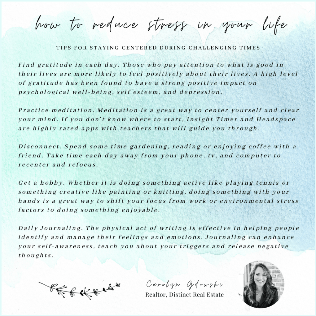 In 2021 there are many contributing factors to the stress in our life that is beyond our control. We all know that getting enough sleep at night, drinking plenty of water and exercising daily is beneficial to not only our physical health, but also our mental health… but what if we can’t even get ourselves to start there? If you are feeling the heaviness of life these days, start small and try one of these tips every day for a week and see how you feel. Find joy in the small things and peace in the good.